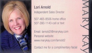 < Back Save Mary Kay Cosmetics - Sales Director Lori Arnold2653 Austin Road Owatonna, Minnesota 55060 United StatesDetailsOpen in Google Maps Map Mary Kay Cosmetics - Sales Director Lori Arnold Visit Website Email 2653 Austin Road Owatonna, MN 55060 (507) 390-1143 Overview Map Mary Kay complimentary consultations for skin care needs for women and men. Instruction on application of color cosmetics. Gift giving services