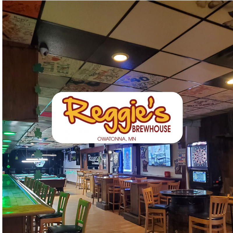 < Back Save Reggie's Bar220 N Cedar Ave Owatonna, Minnesota 55060 United StatesDetailsOpen in Google Maps Map Reggie's Bar Email 220 N Cedar Ave Owatonna, MN 55060 (507) 413-6000 Overview Map Downtown Bar with Patio - They have Dart and Pool leagues. They offer a large assortment of Specialty beers and blended drinks. Watch your favorite team on large flat screens. - Live Entertainment, check schedule