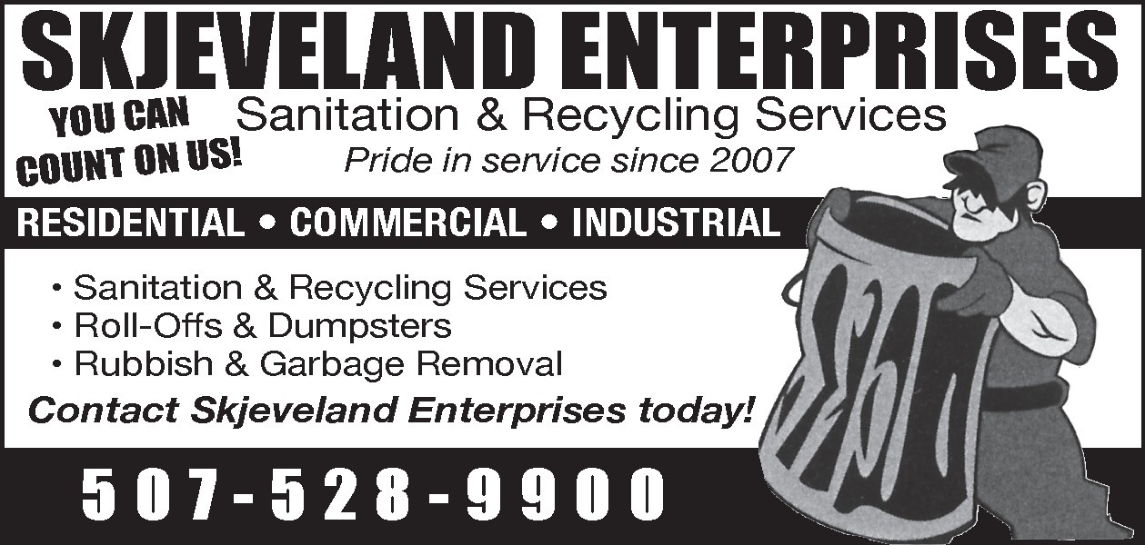 Home Save Skjeveland Enterprises-Claremont63614 130th AVE Claremont, Minnesota 55924 United StatesDetailsOpen in Google Maps Map Skjeveland Enterprises-Claremont Visit Website Email 63614 130th AVE Claremont, MN 55924 (507) 528-9900 Overview Map Residential and Commercial Garbage Disposal Services.