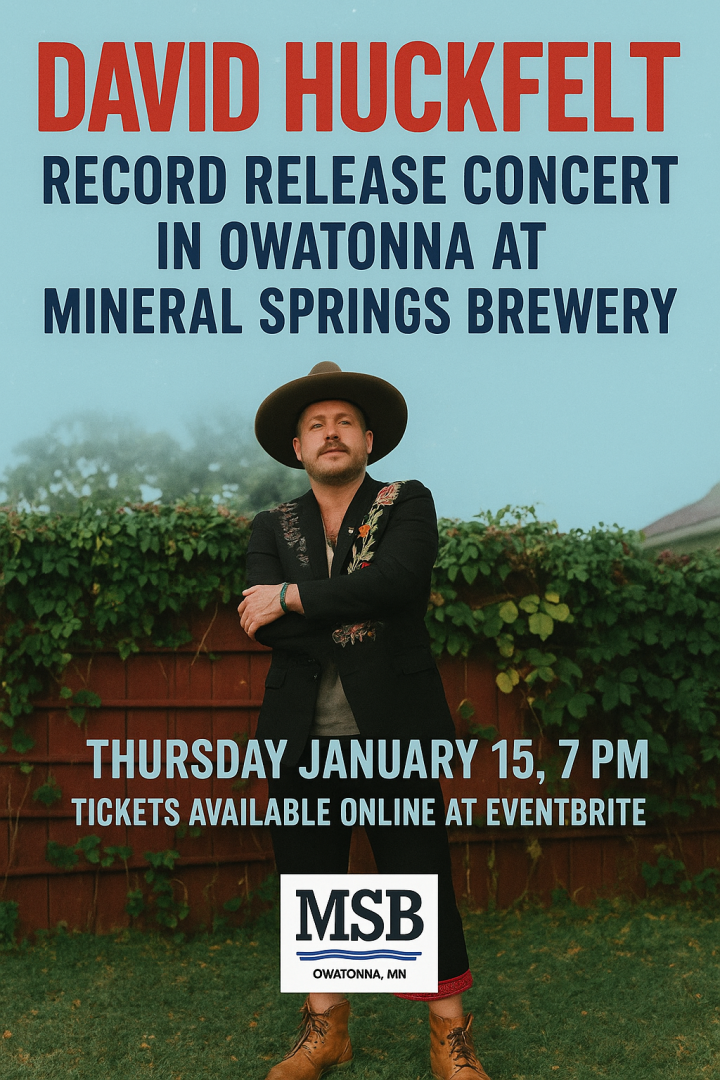 Acclaimed and Nationally Renowned Musician David Huckfelt is releasing his newest album “I Was Born, But” and this concert will serve as an official Record Release Concert and Celebration in Owatonna. David Huckfelt is a singer / lyricist / activist and founding frontman of Minneapolis indie-folk cult favorite The Pines. Since leaving the Pines he has released two critically acclaimed recordings and In a fifteen-year touring career, he has shared stages with artists from John Prine, Mavis Staples, and Emmylou Harris to Bon Iver, Calexico, and Trampled By Turtles. With thousands of shows under his belt across the US, Canada & overseas, Huckfelt’s grassroots following has grown from small-town opera houses, Midwestern barn concerts to national tours and festival stages such as Hardly Strictly Bluegrass, Edmonton and Calgary Folk Fests, and the legendary First Avenue Mainroom. Mineral Springs Brewery’s warm inviting space will be the perfect setting on a Thursday night in the middle of January. Get your tickets in advance and don’t be left out in the cold. Table seating also available in addition to chair seats