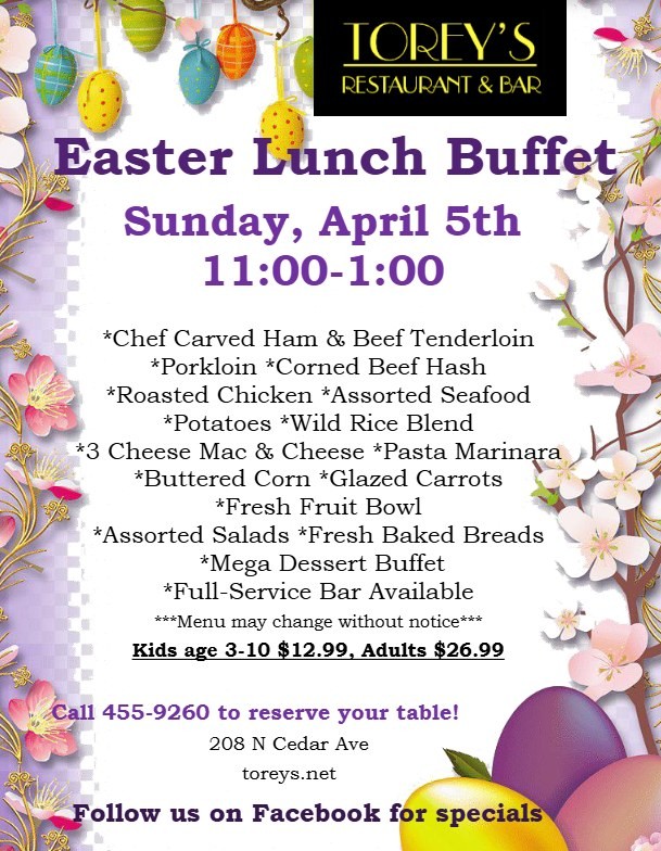 Easter Lunch Buffet at Torey's208 North Cedar