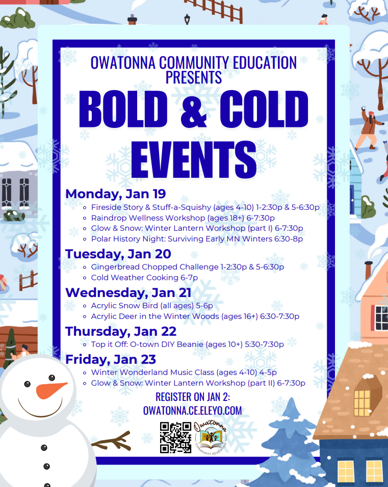Owatonna Community Ed Bold & Cold Events- Registration begins Jan 2