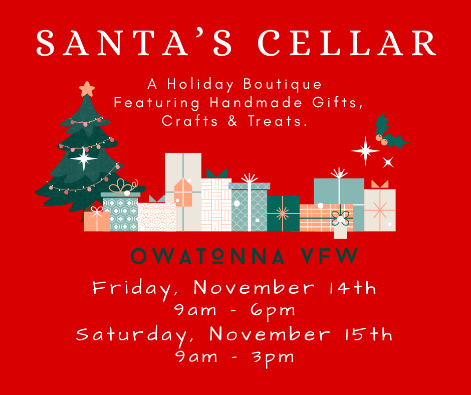Description: A unique, holiday boutique featuring handmade gifts, crafts & treats made by local artists & bakers. A yearly shopping tradition since 1978! Find us on Facebook @SantasCellarOwatonna and Instagram @SantasCellar. & Treats.ts. A Holiday Boutique