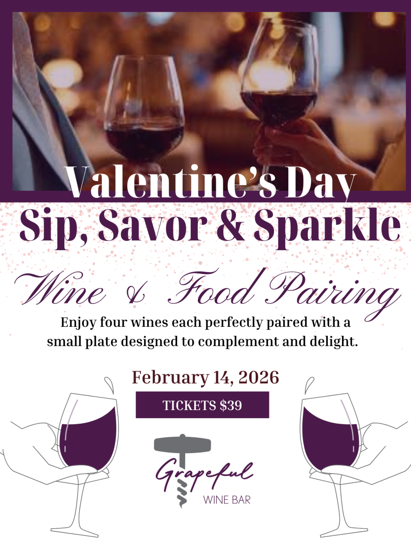 Sip, Savor & Sparkle: A Valentine's Wine & Food Pairing at Grapeful Wine Bar306 North Cedar Ave.