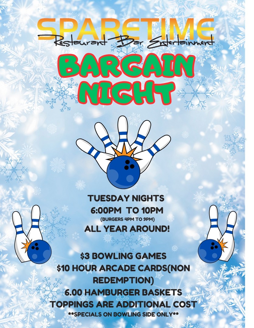 Sparetime Bargain Night- Every Tuesday