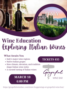 Reserve your spot and sip your way through Italy at Grapeful Wine Bar!