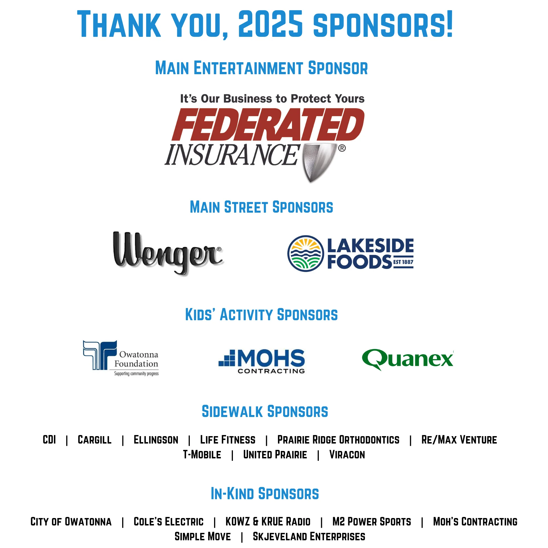 Interested in being a sponsor or volunteering? Contact Lisa Cochran, Main Street Director, at lcochran@owatonna.org. Vendor applications will be listed at the bottom of the page when they open in 2026.